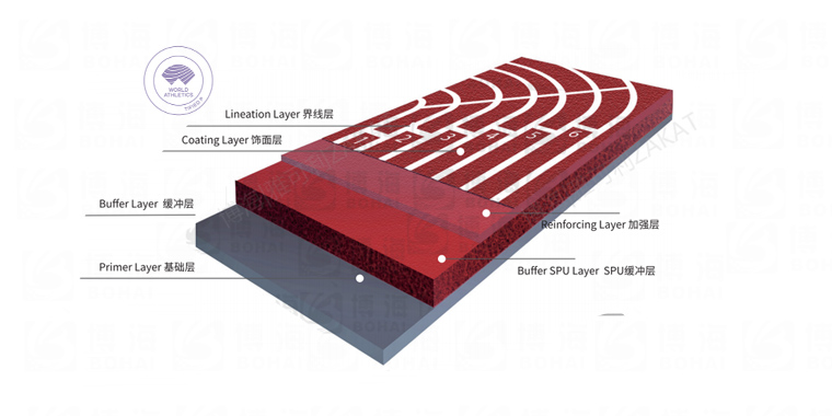 由微發(fā)泡閉孔技術(shù)的聚氨酯底膠鋪設(shè)而成,為世界田徑(國際田聯(lián))認(rèn)可推薦為各大型國際賽事運(yùn)動(dòng)員競賽和訓(xùn)練專用場地類型,耐高低溫、沖擊吸收。
